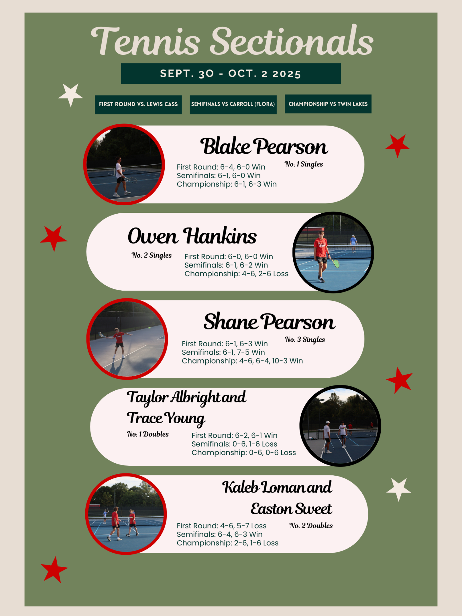The boys tennis team loses 2-3 to Twin Lakes in sectional championship